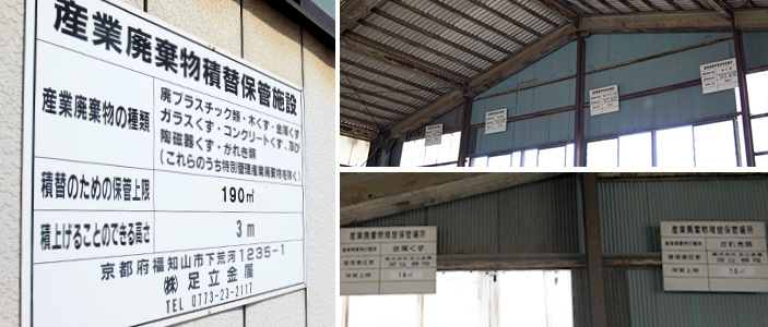 足立金属では中間処理までの間、収集した産業廃棄物を適正に分別して各品目毎に保管しています。